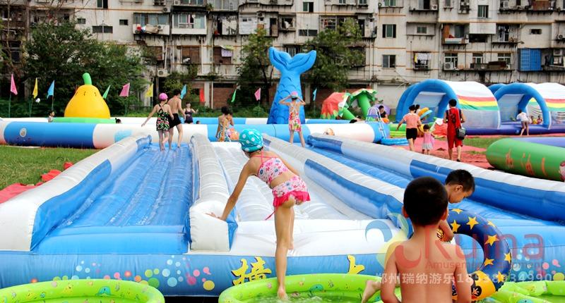 目前比較時(shí)尚流行的移動(dòng)水上樂園,具有投資量可控,可根據(jù)場地大小進(jìn)行調(diào)整,在短時(shí)間內(nèi)可組建完成,迅速投入經(jīng)營,建設(shè)日期為常規(guī)的二十分之一到三十分之一,投資規(guī)模在常規(guī)主題樂園的十分之一到四十分之一。夏季經(jīng)營結(jié)束后,產(chǎn)品可迅速收起,易于保管,不占用場地,經(jīng)營場所可另作他用。
