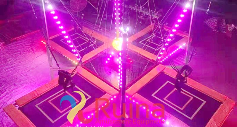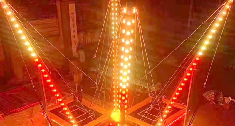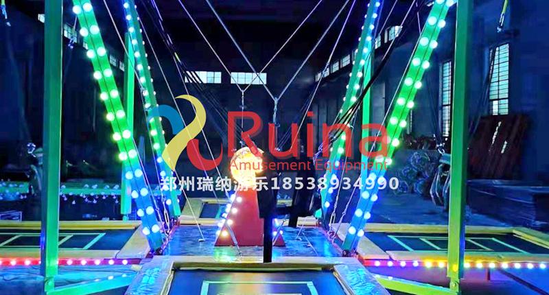 常規(guī)四人蹦極他沒有裝飾也沒有燈光的,就是四個(gè)面小孩在上面玩耍的,但是四人發(fā)光蹦極就不是這種的了,他這邊除了有豪華轉(zhuǎn)馬裝飾外,這邊還有燈光的,并且燈光的效果是出乎意料的,如果晚上經(jīng)營的話,這是一個(gè)不錯(cuò)的選擇。